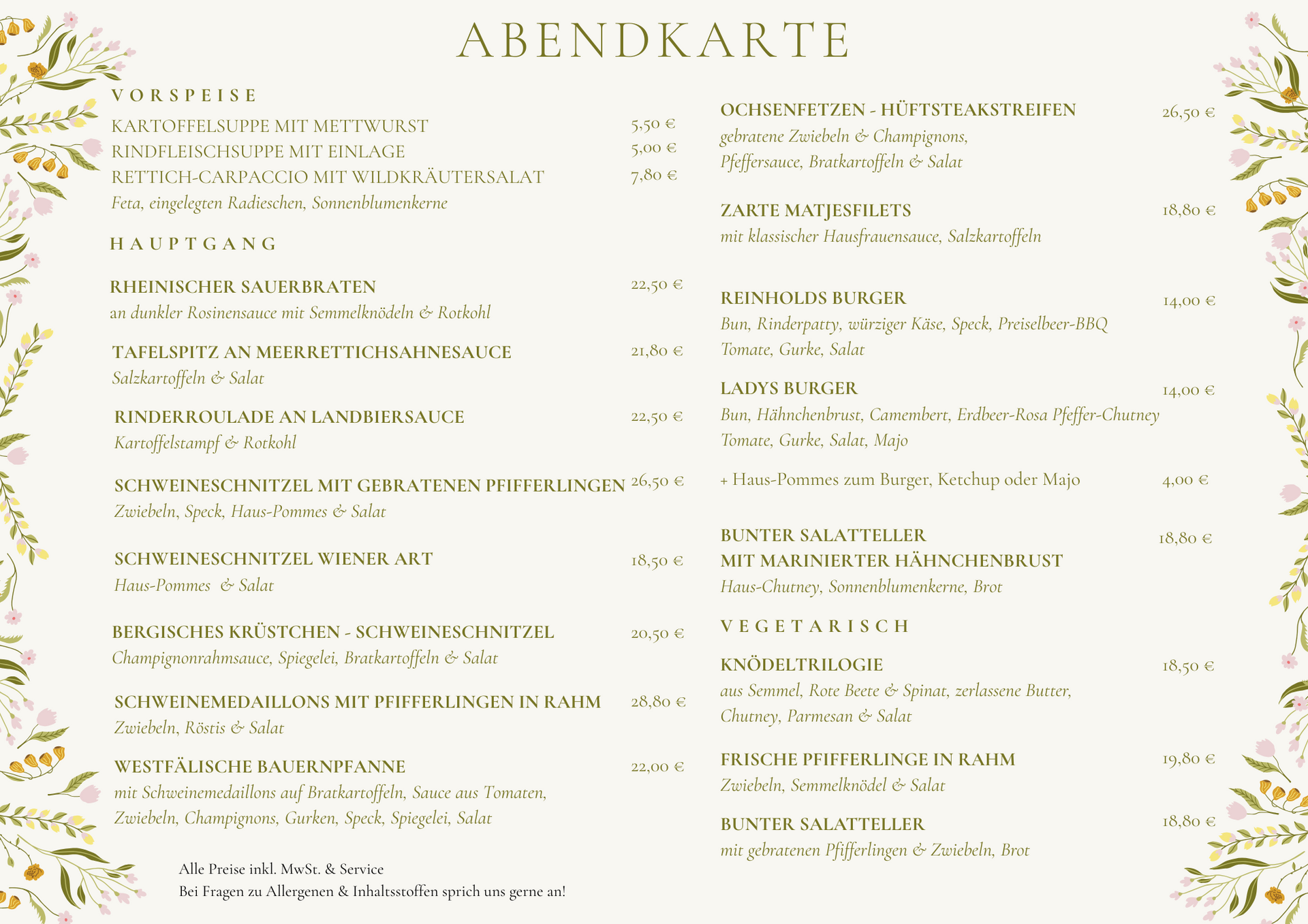 Ein deftiges Vergnügen mit typisch bergischen, hausgemachten Spezialitäten: